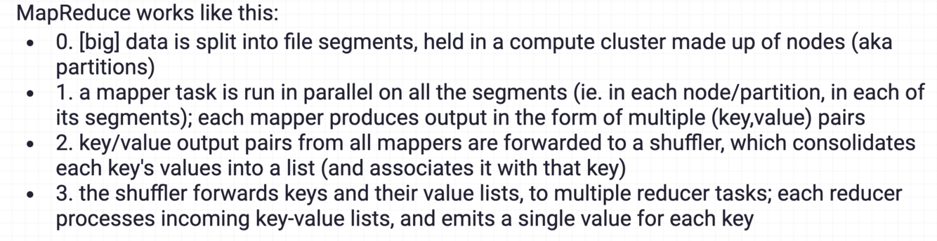 Optionally, before forwarding to shufflers, a ‘combiner’ operation in each node can be set up to perform a local per-key reduction - if specified, this would be ‘step 1.5’, in the above workflow.