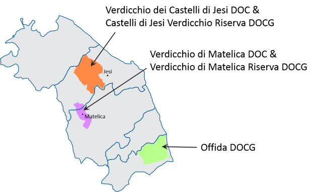 Characterize the differences between Verdicchio dei Castelli di Jesi and Verdicchio di Matelica.