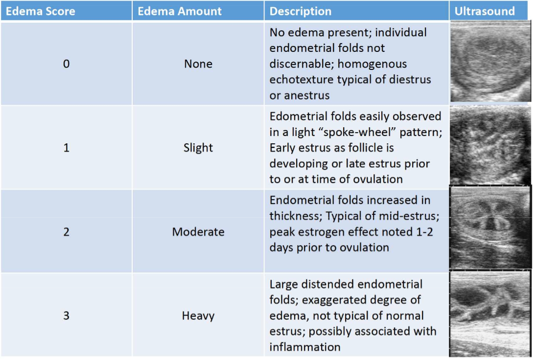 How is edema seen on transrectal scored?