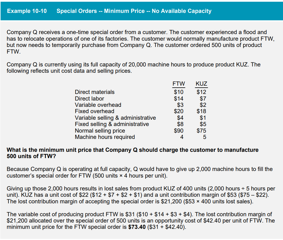example of special orders (minimum price) - no available capacity