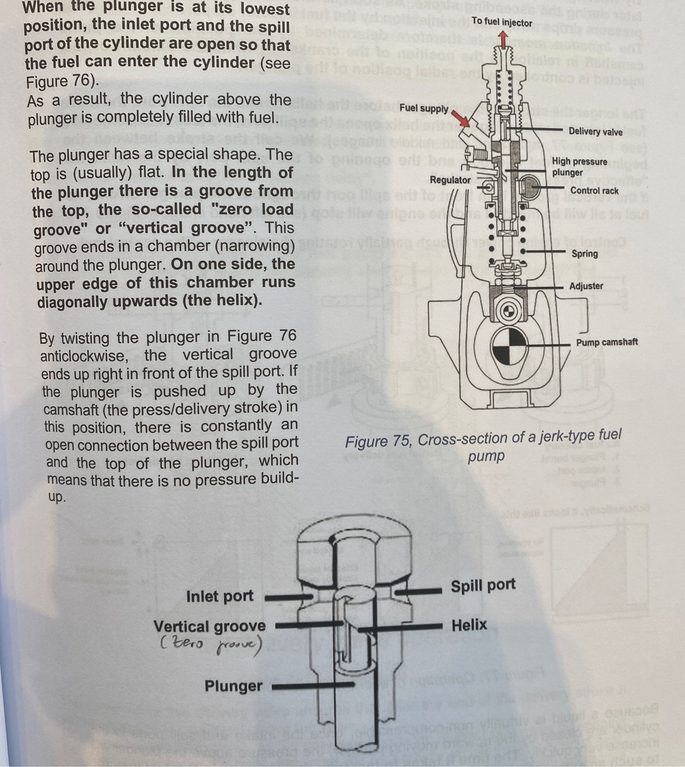 => the longer the plunger stroke before the helix opens the spill port, the more fuel is pumped