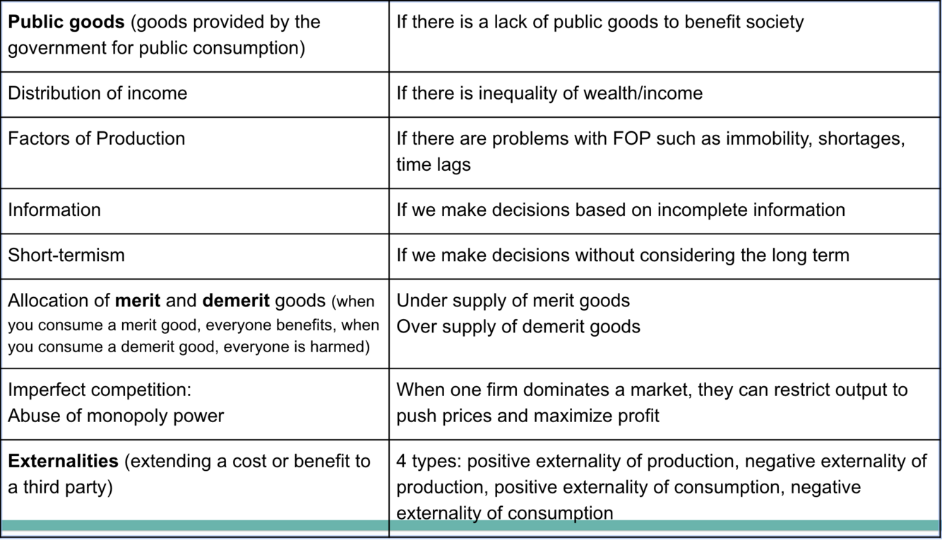 A situation when the free market under or over allocate good or services, causing over- or under-consumption and production.