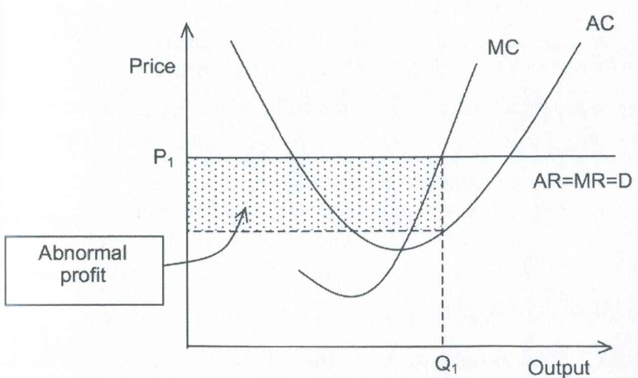 AR=D moves to the Left only normal profit is made due to firms entering the market due to low barriers to entry.