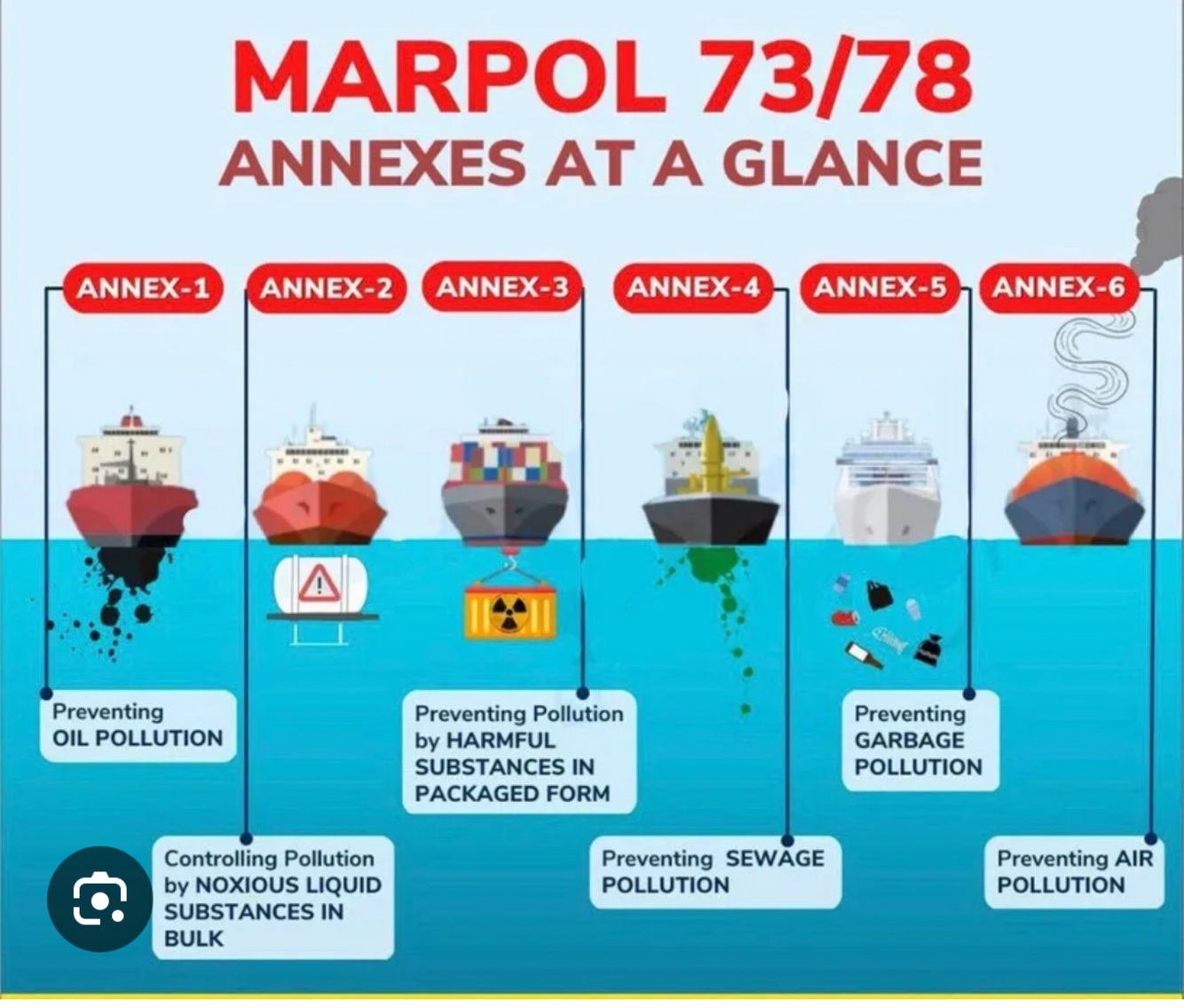Sets limits on sulphur oxide and nitrogen oxide emissions from ship exhausts and prohibits deliberate emissions of ozone depleting substances; designated emission control areas set more stringent standards for SOx, NOx and particulate matter. A chapter adopted in 2011 covers mandatory technical and operational energy efficiency measures aimed at reducing greenhouse gas emissions from ships.