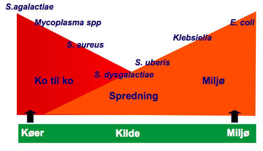 Nævn hvilke patogener som spredes fra hhv. miljøet og fra ko til ko.