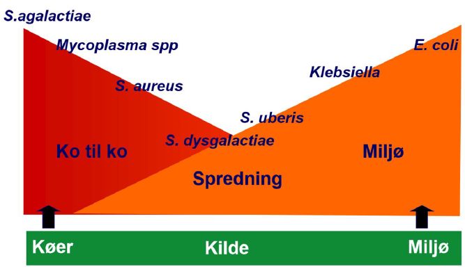 Vigtig risikofaktor: læsioner på patterne, malkemaskinen, manglende hudpleje. Inficeret mælk i malkemaskinen er en vigtig smittekilde