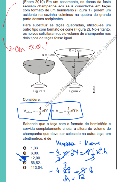 não esquecer de dividir por dois. A figura representa metade de uma esfera.
