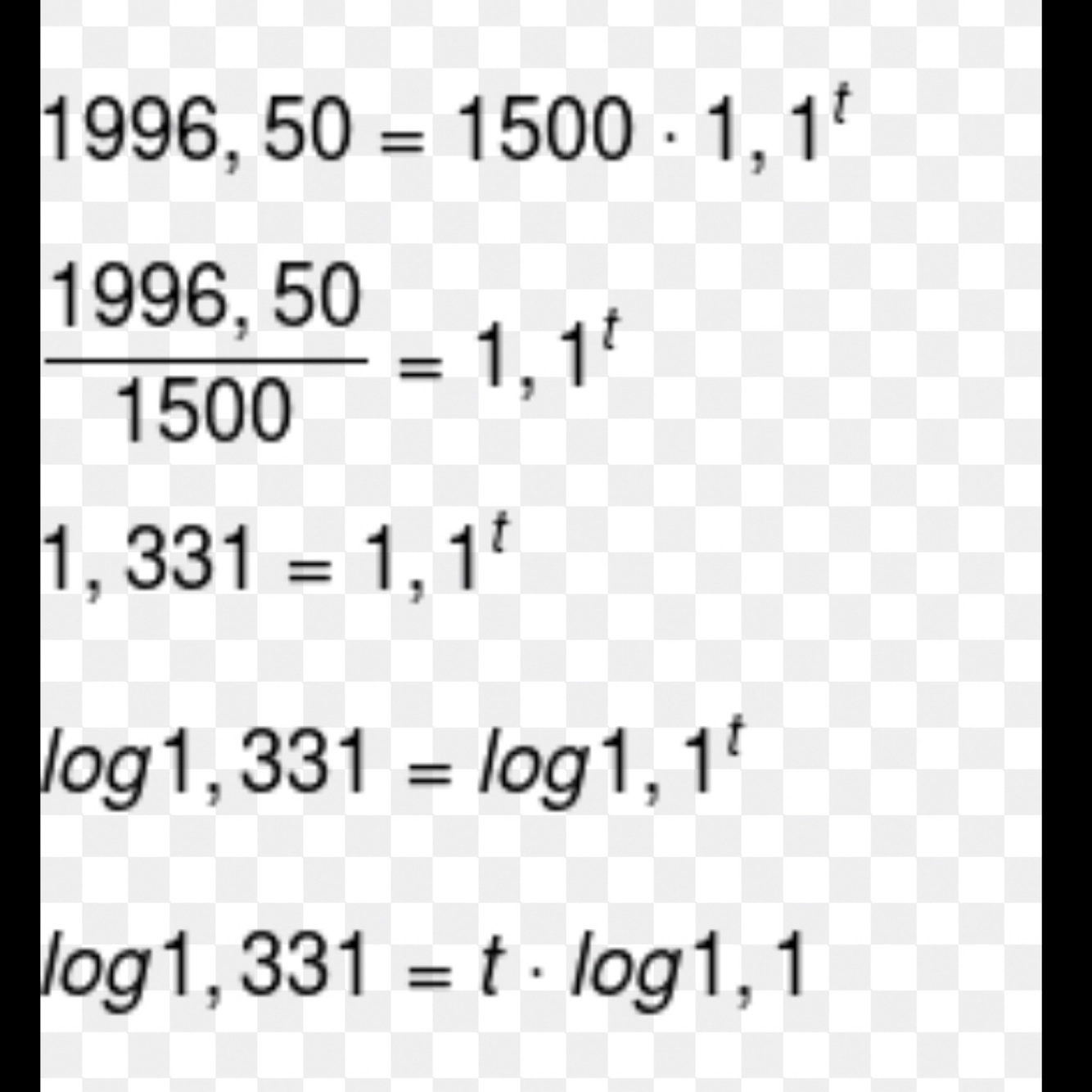 Lembre de usar log dos dois lados para “derrubar” o t pra frente do log.