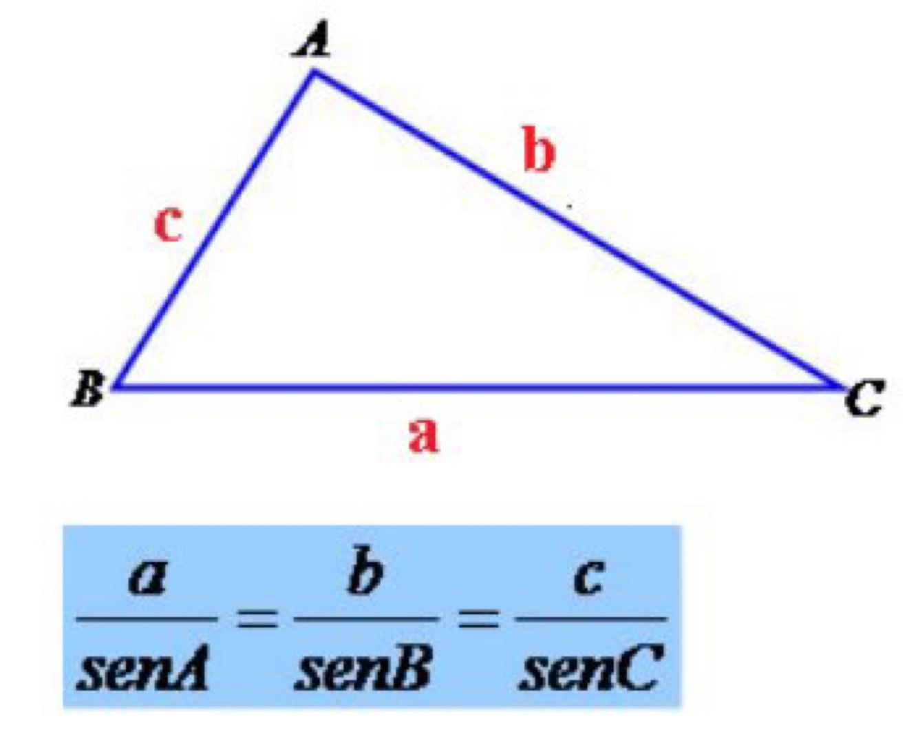 A Lei dos Senos determina que num triângulo qualquer, a relação do seno de um ângulo é sempre proporcional à medida do lado oposto a esse ângulo.