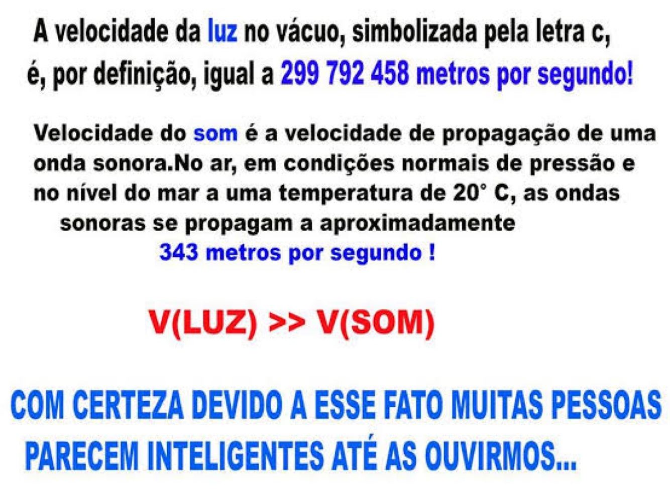 A velocidade da luz é maior do que a velocidade do som por isso vimos primeiro o raio para só então depois ouvir um trovão.