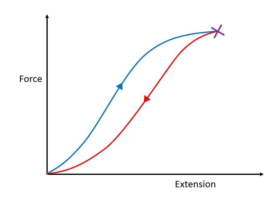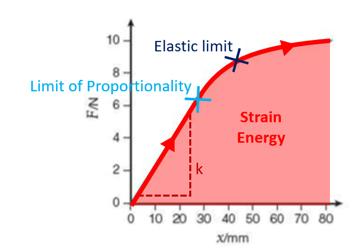 Area under line → The strain energy stored loading the spring or energy released unloading the spring