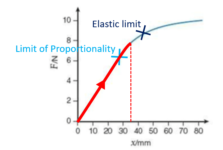 Limit of proportionality is the point at which a stretched spring (or wire) stops obeying Hooke’s law.