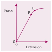 ⋅ when the force becomes great enough, the graph starts to curve (between points P and E)