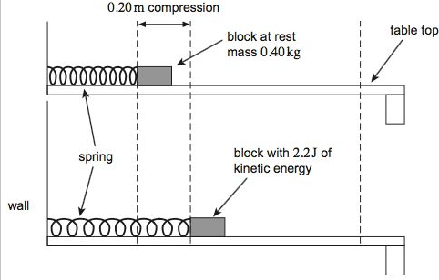 Why is the initial energy stored in the spring greater than 2.2 J?