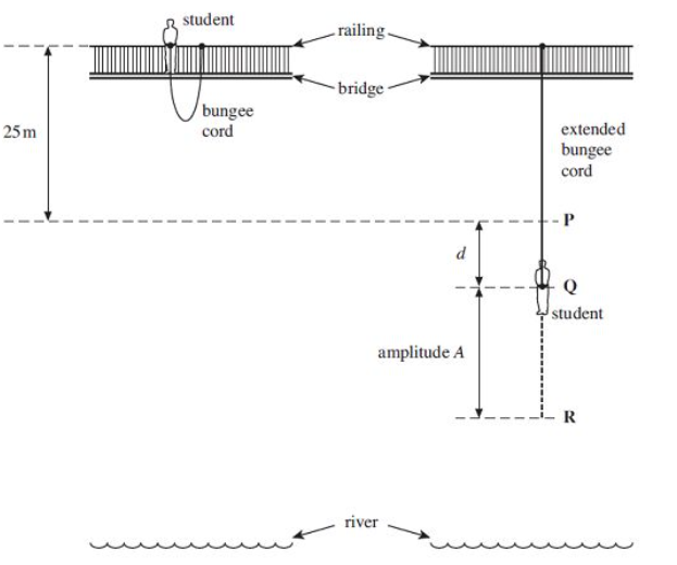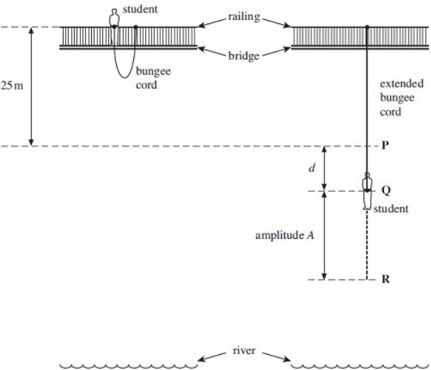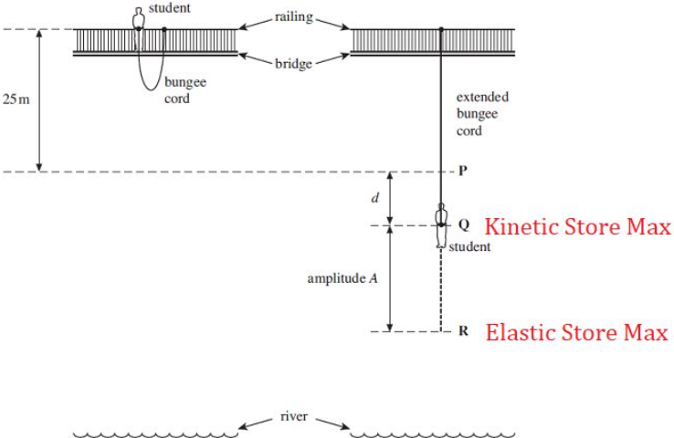 Describe the energy changes that occur as the bungee jumper fall to the lowest point.