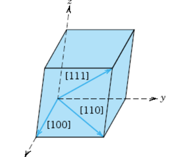 Sketch the lattice direction vector based on the equations [100], [110] and [111].