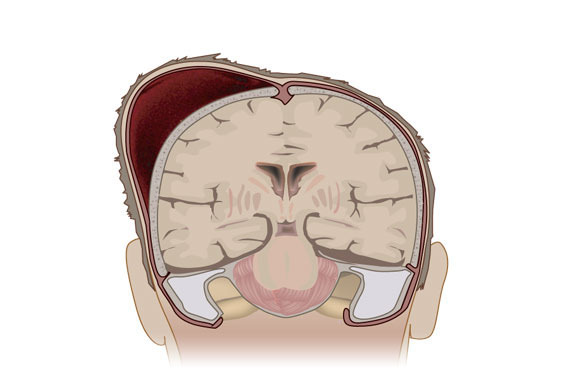♦ A collection of blood between the periosteum and the skull bone that it covers.