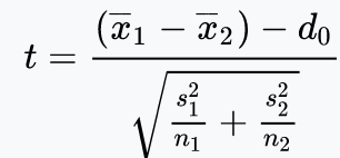 two sample unpooled t-test
