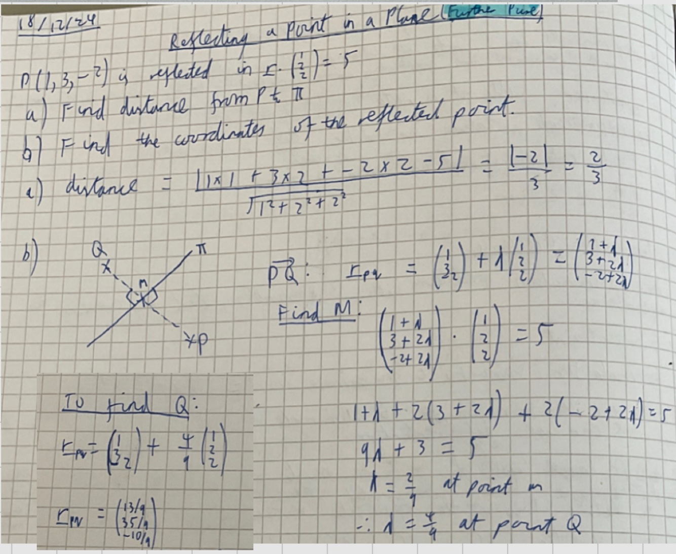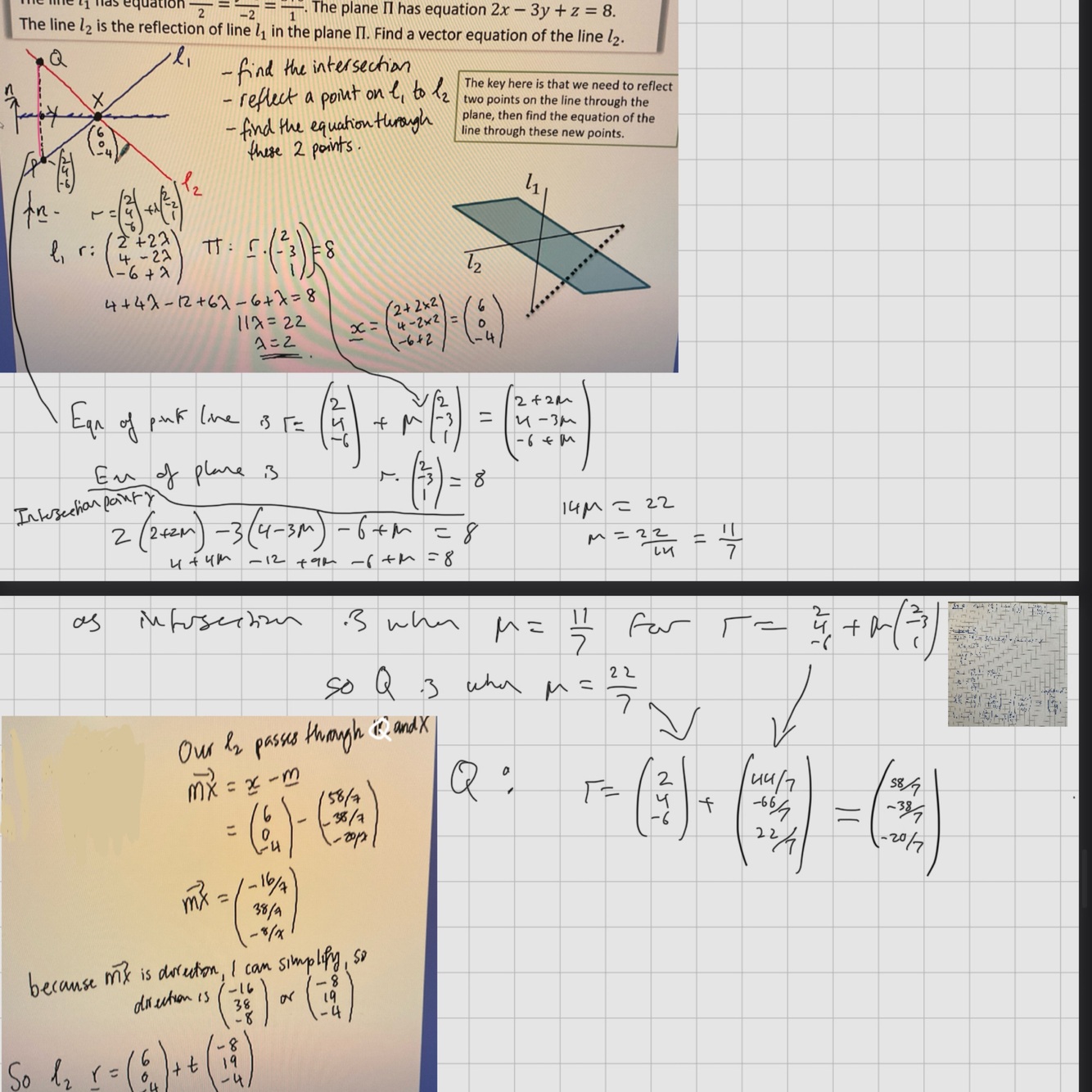 Put general line eqn in plane eqn to find value for lambda. Double value of lambda and sub into line eqn to find reflected point.