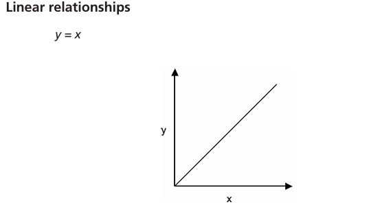 Y=x - straight line from corner at 45degrees