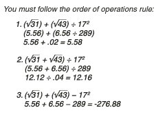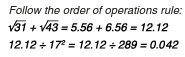 To solve this equation, follow these steps: clear all of the parentheses, perform the multiplication, then the addition. Finally take the square root of the number you have just obtained.