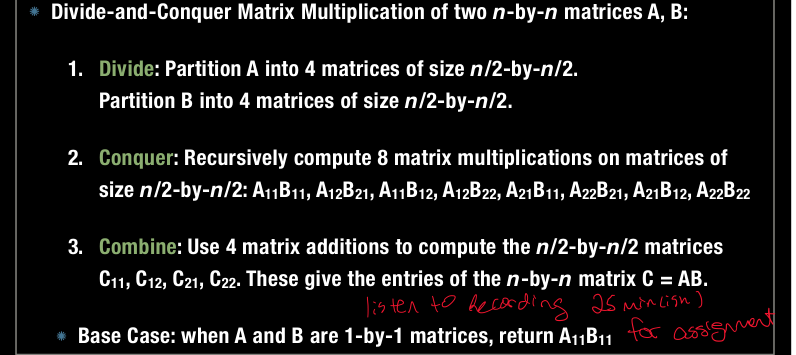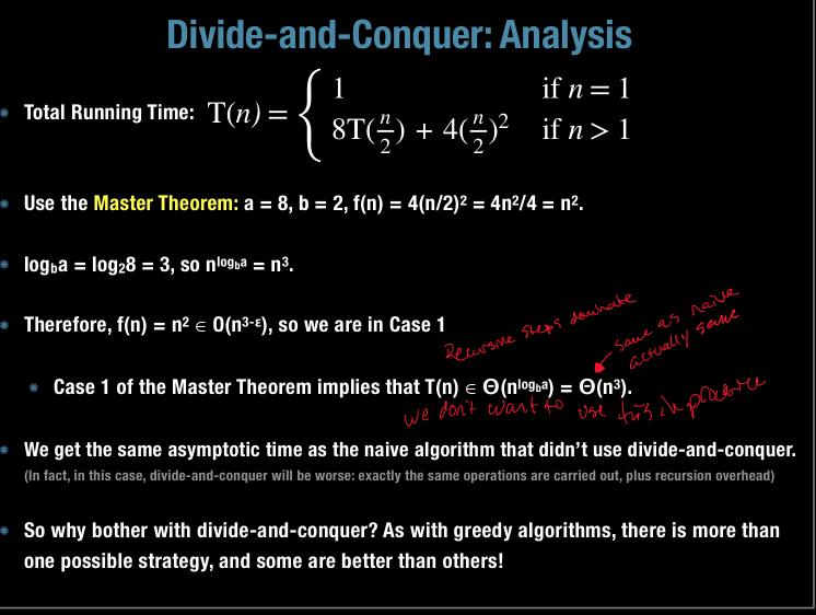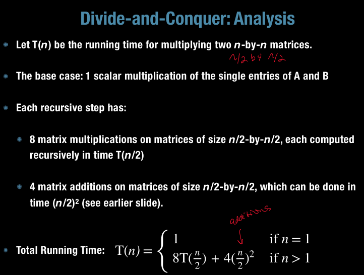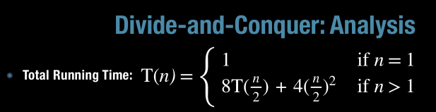 What is the run time analysis of divide-and-conquer for multiplying two n-by-b matrices? (in general)