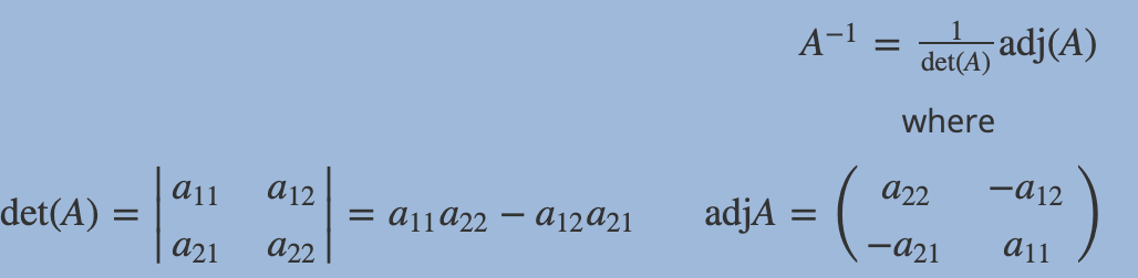Give the equation for the inverse of a 2x2 matrix