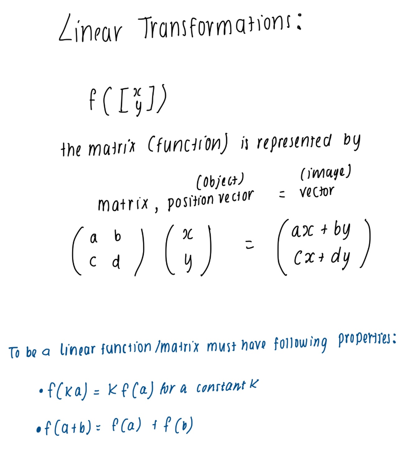 What is the general form of linear functions/ transformations?