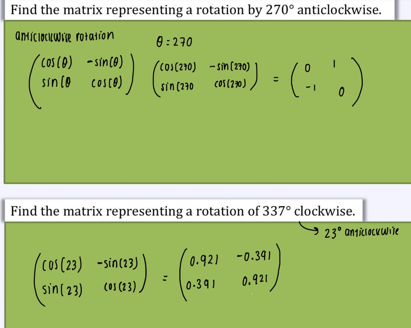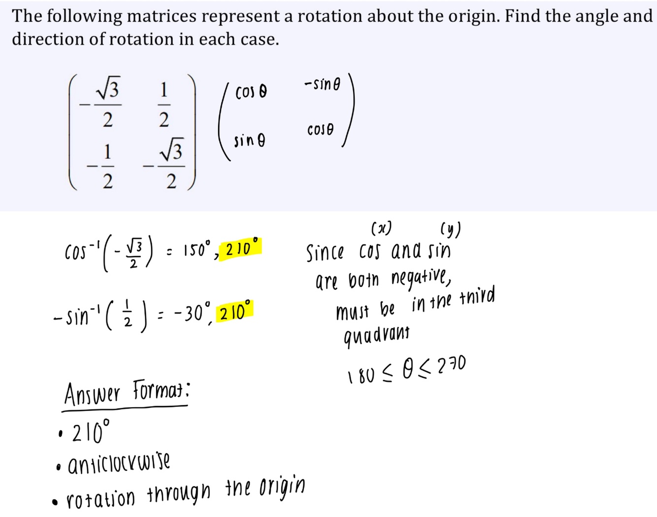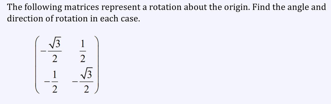 Find the angle and direction of rotation in each case