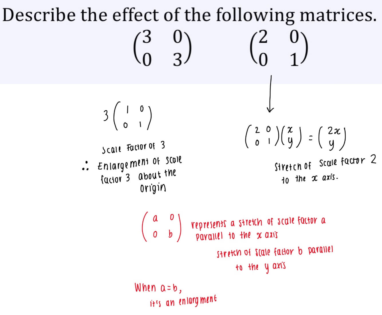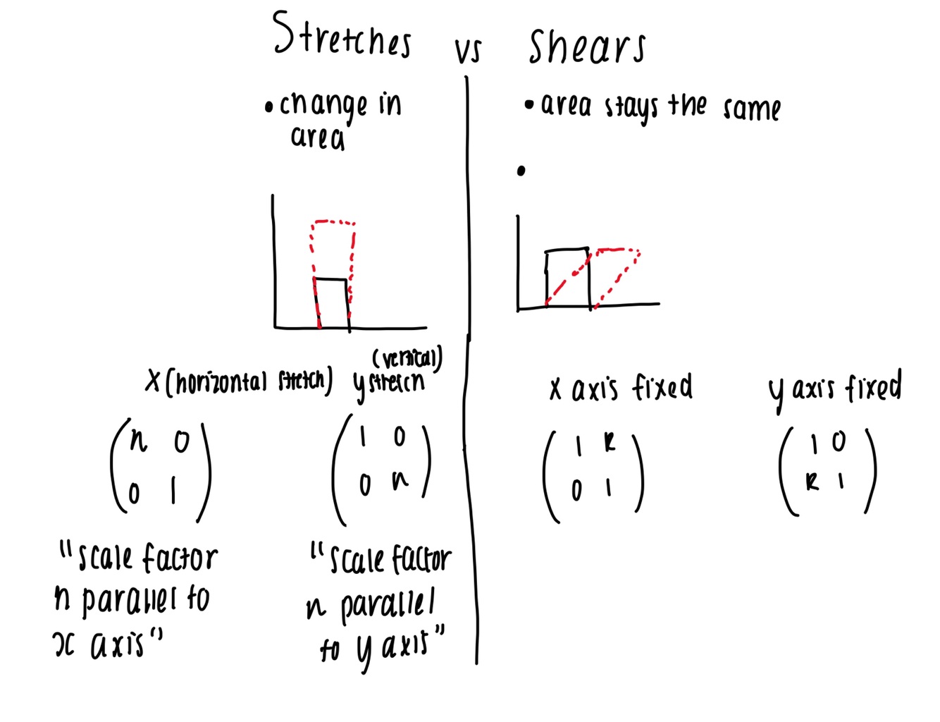 What is the difference between a stretch and a shear, and their general form :