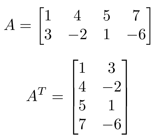A transpose is a matrix where the rows of matrix A are the columns of matrix AT