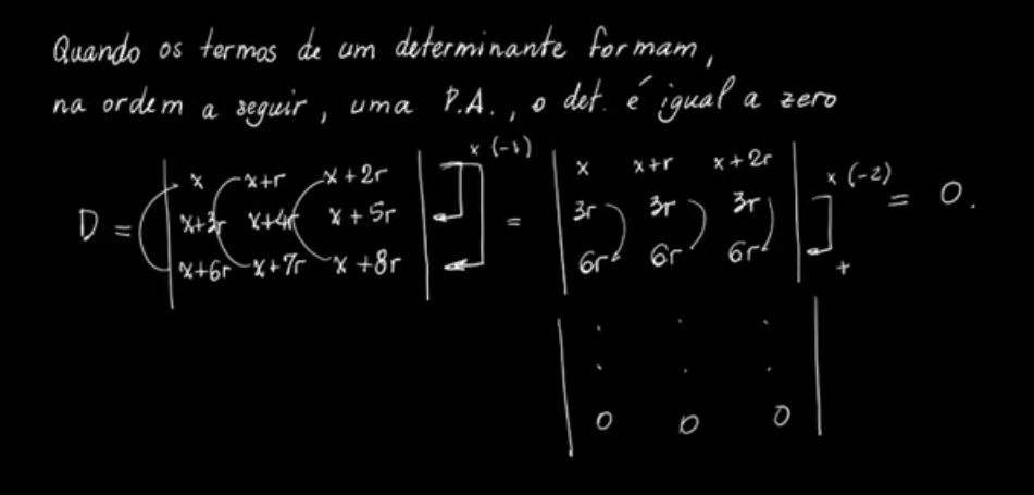Se os termos de um determinante estiverem em PA ou PG, o determinante é..