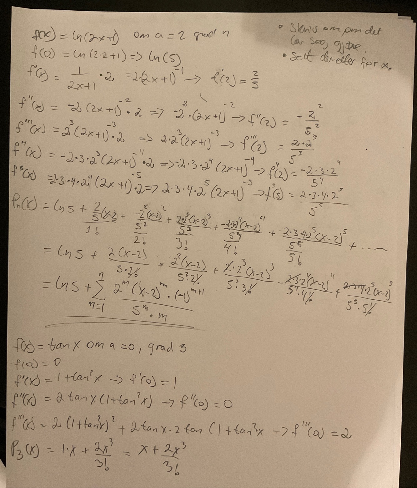 Bestem taylorpolynomet til funksjonene: