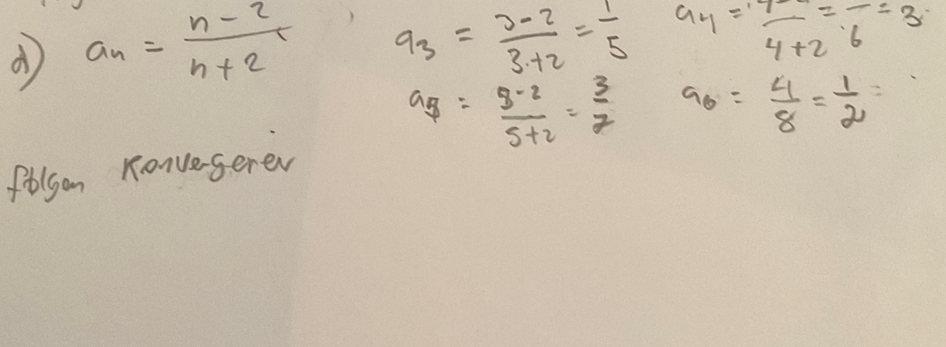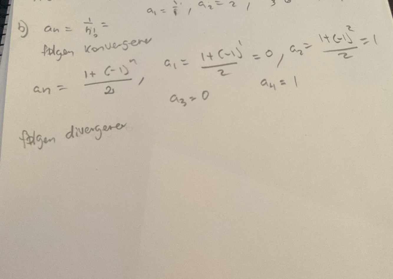 Avgjør om tallfølgene konvergerer eller divergerer