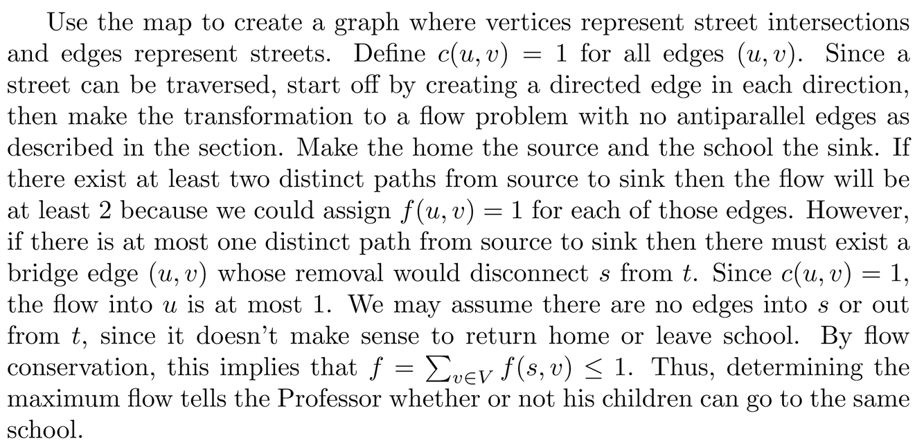We can use Max-Flow problem to determine whether there are at least two totally distinct ways to get from source point to a target point. How?