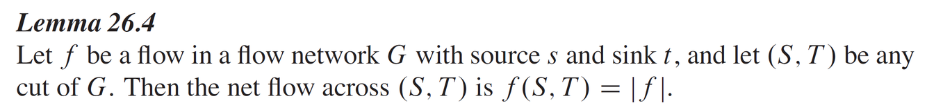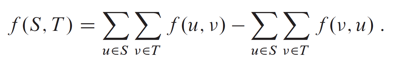 f is a flowm the net flow f(S,T) across the cut (S,T) is defined to be: