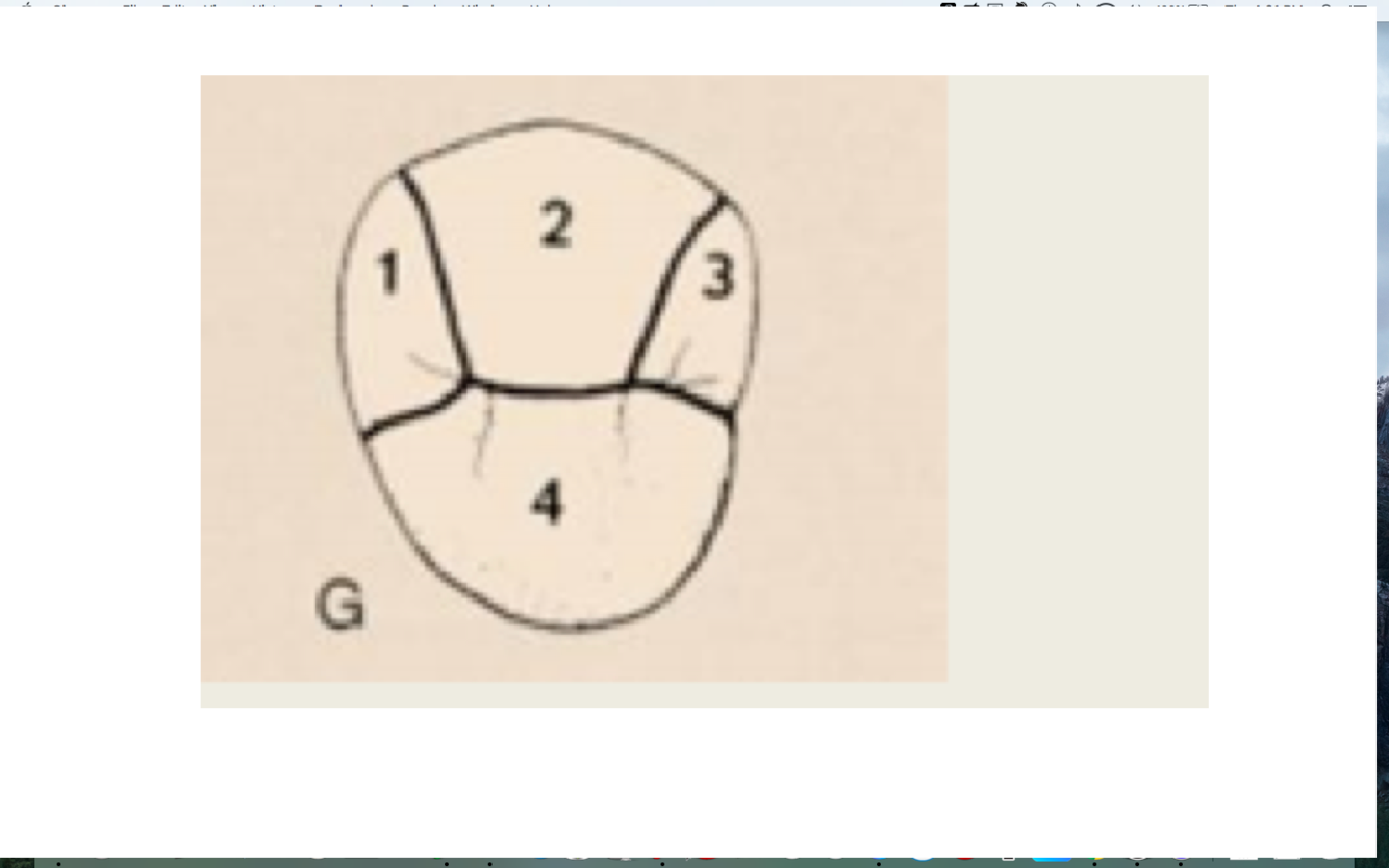 4–> cingulum, mesial, distal, incisor