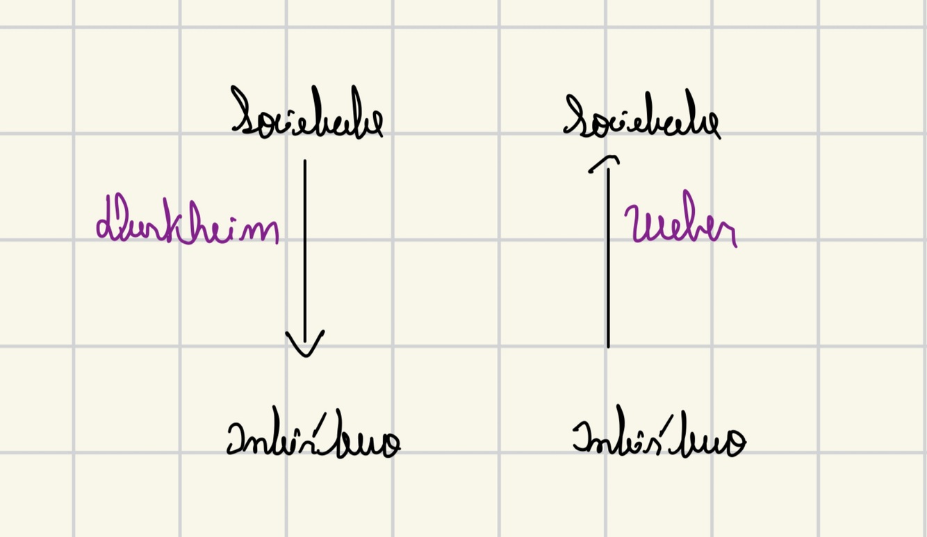 Relacione os sentidos da seta da imagem abaixo com o estudo da sociologia de Durkheim e de Weber.