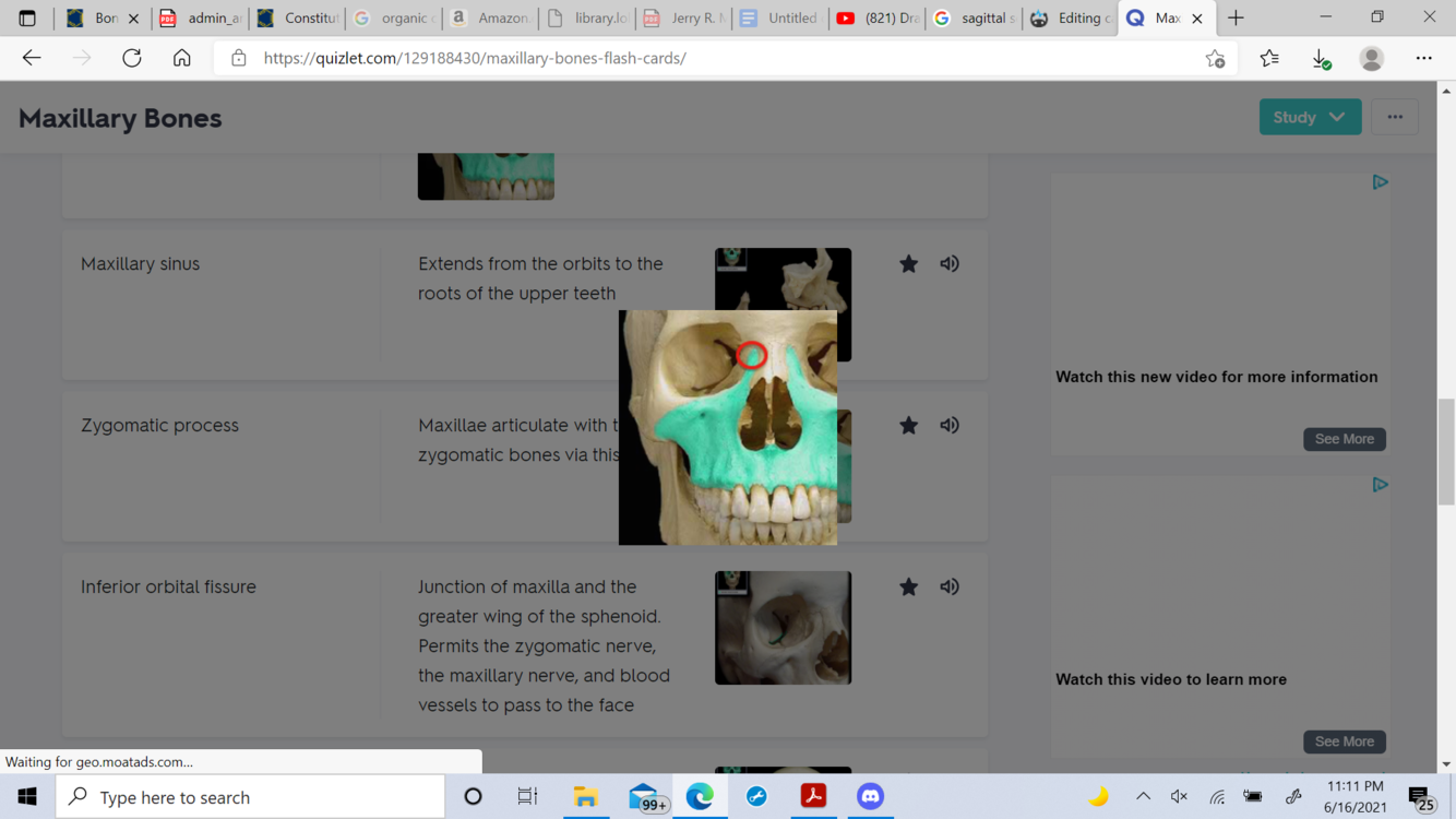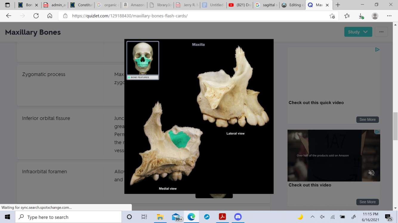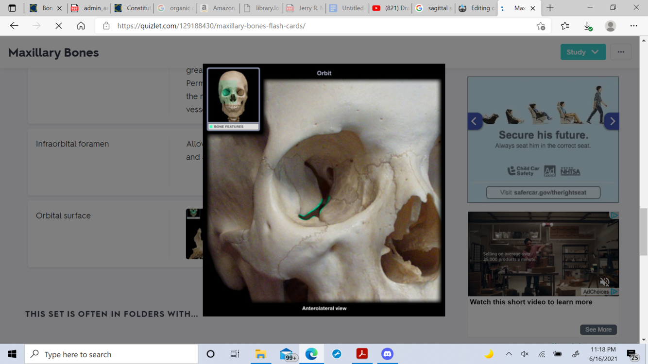 Infraorbital foramen (Allows the infraorbital nerve and artery to reach the face)