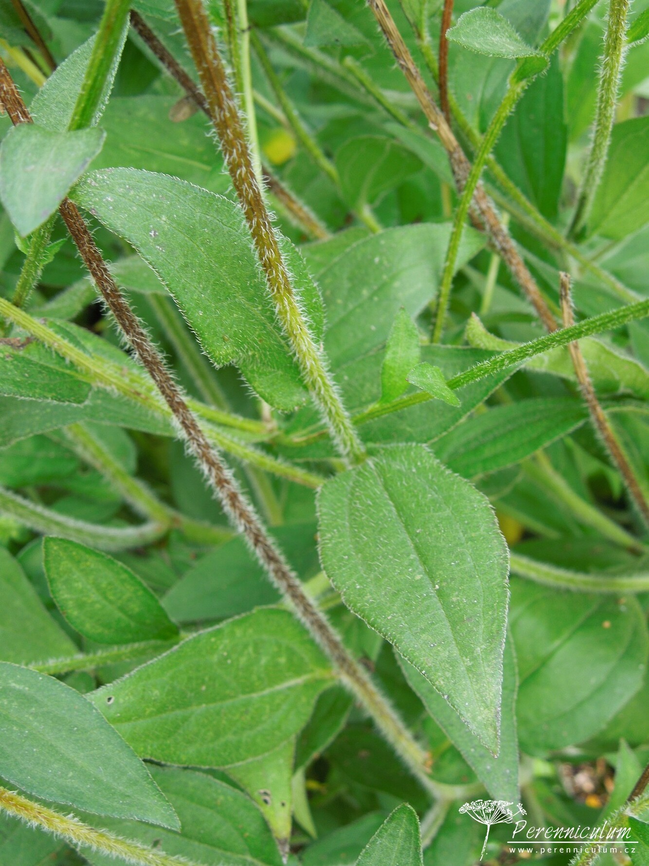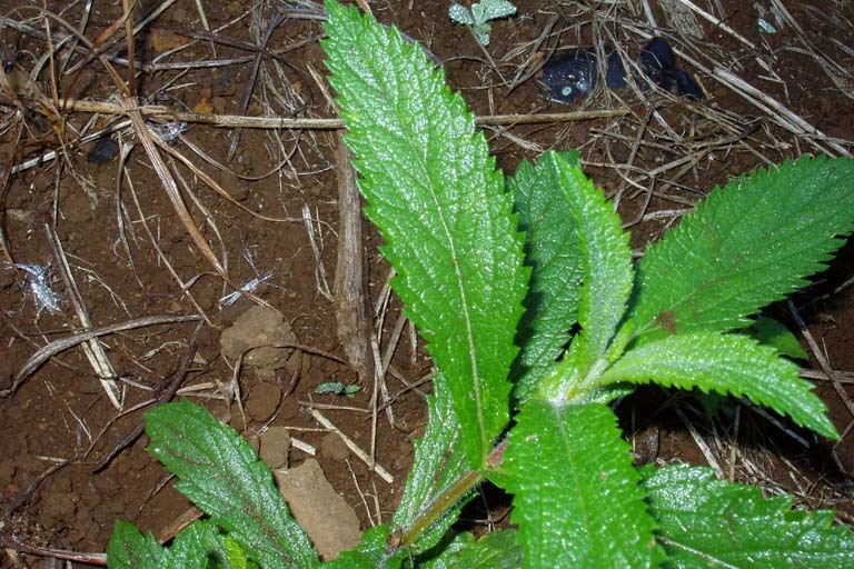 Lance like leaves are coarse and broader at base, on strong hairy stems