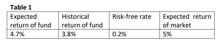 Calculate, showing all your workings, the beta for the multi-factor fund.