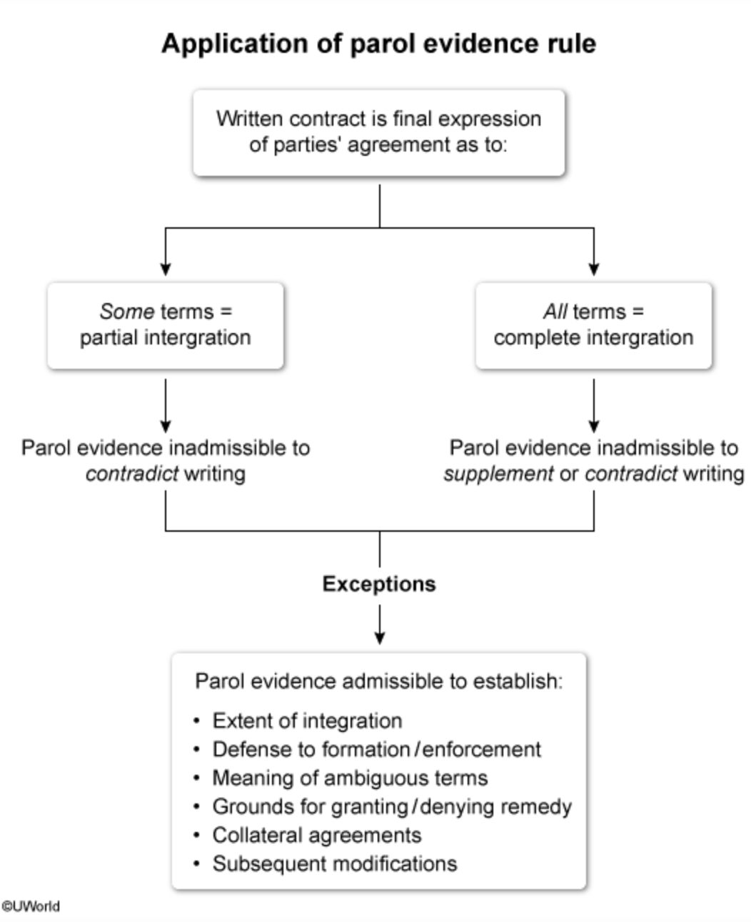 The parol evidence rule generally bars the admission of prior or contemporaneous agreements that modify or contradict the terms of a written contract.