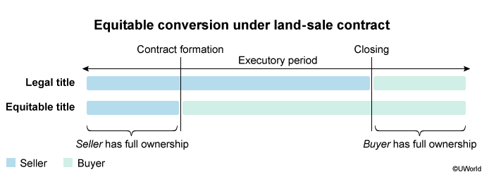 3) Execution transfers EQUITABLE TITLE via equitable conversion — risk of loss on shifts to the buyer
