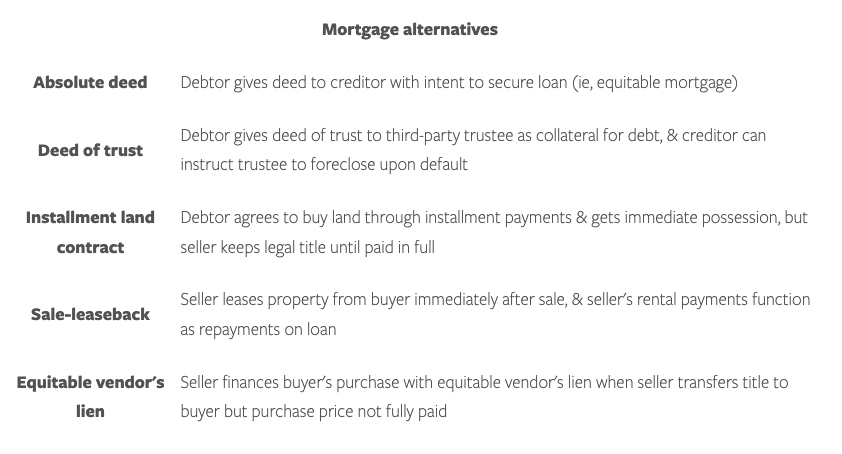 Alternatives to Mortgages—Equitable Mortgages