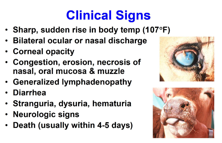 WHat are the clinical signs of MCF