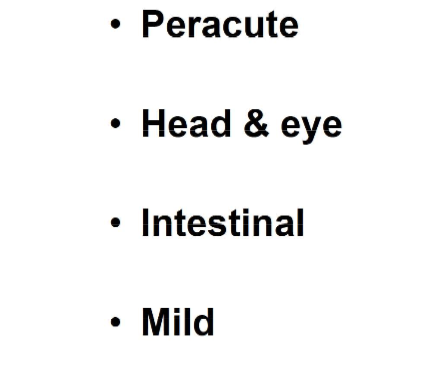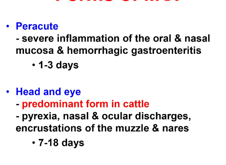 What happens in the peracute and Head and eye forms of MCF?