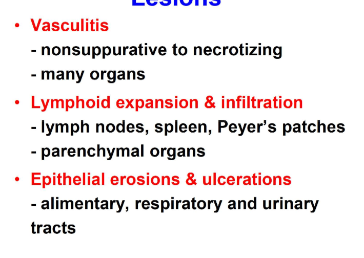 What are common microscopic lesions with MCF?