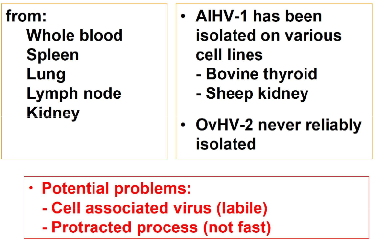 What is needed for Virus Isolation diagnosis of MCF?