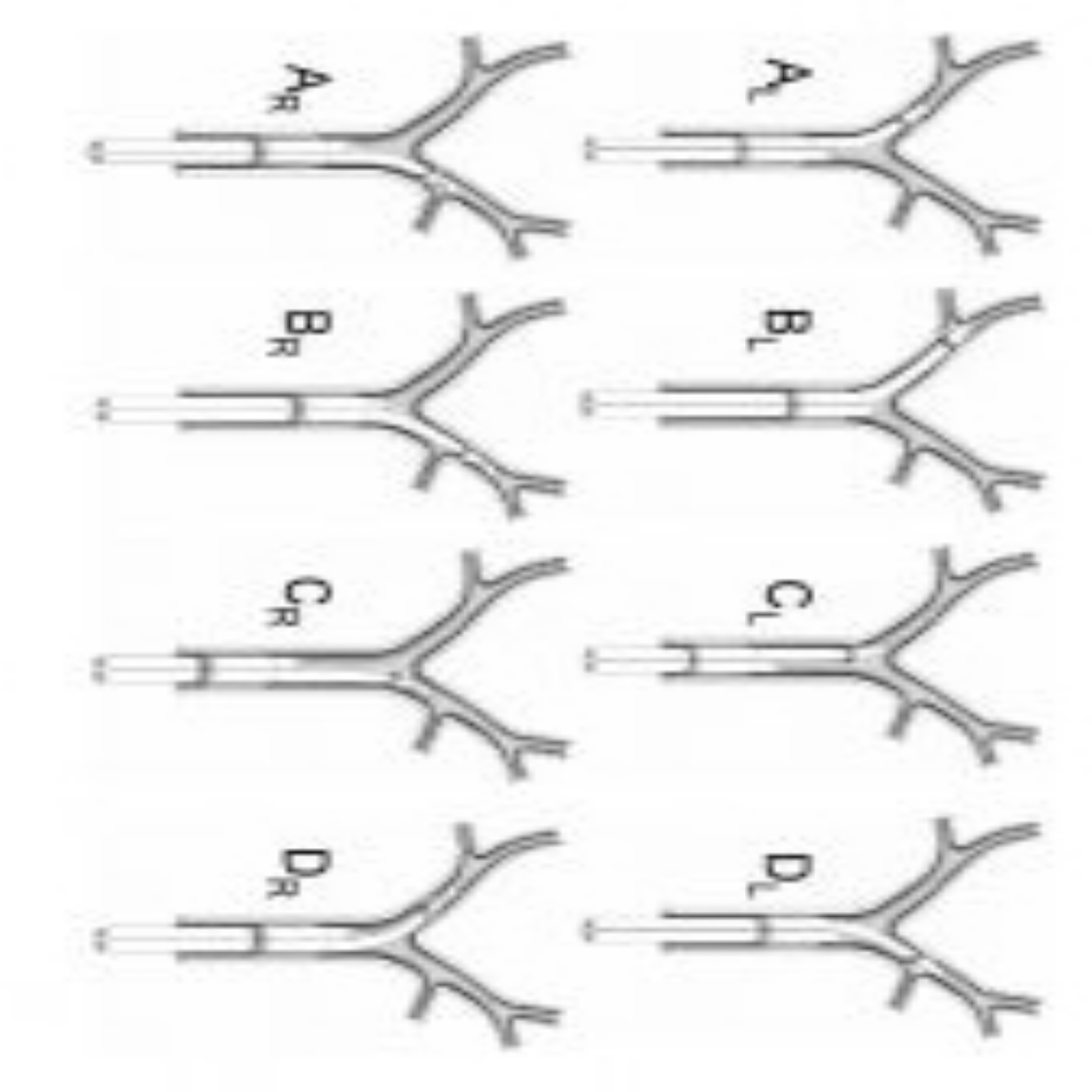 BR = introduced to far, resulting in ventilation of right middle and right lower lobe only, right upper is not ventilated, resulting in hypoxemia