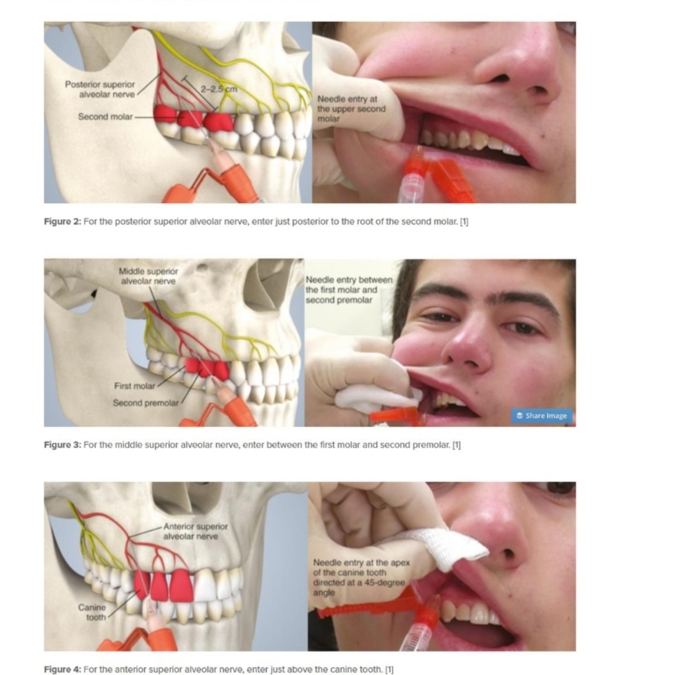 • Anterior superior alveolar nerve from the infra orbital nerve to the maxillary sinus and canine and incisor teeth